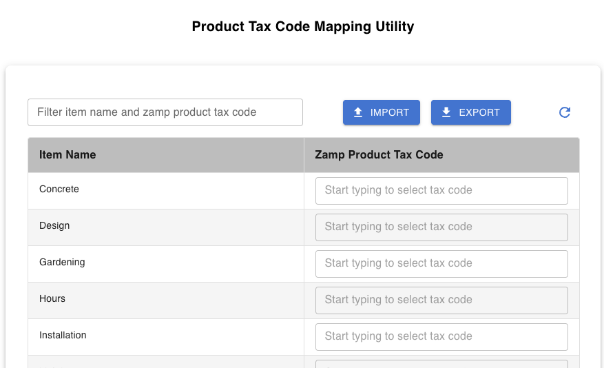 - Under Product Tax Code Mapping, use this section to map your items to Zamp Product Tax Codes if that is your preference. Determine if you are required to do this through this documentation.